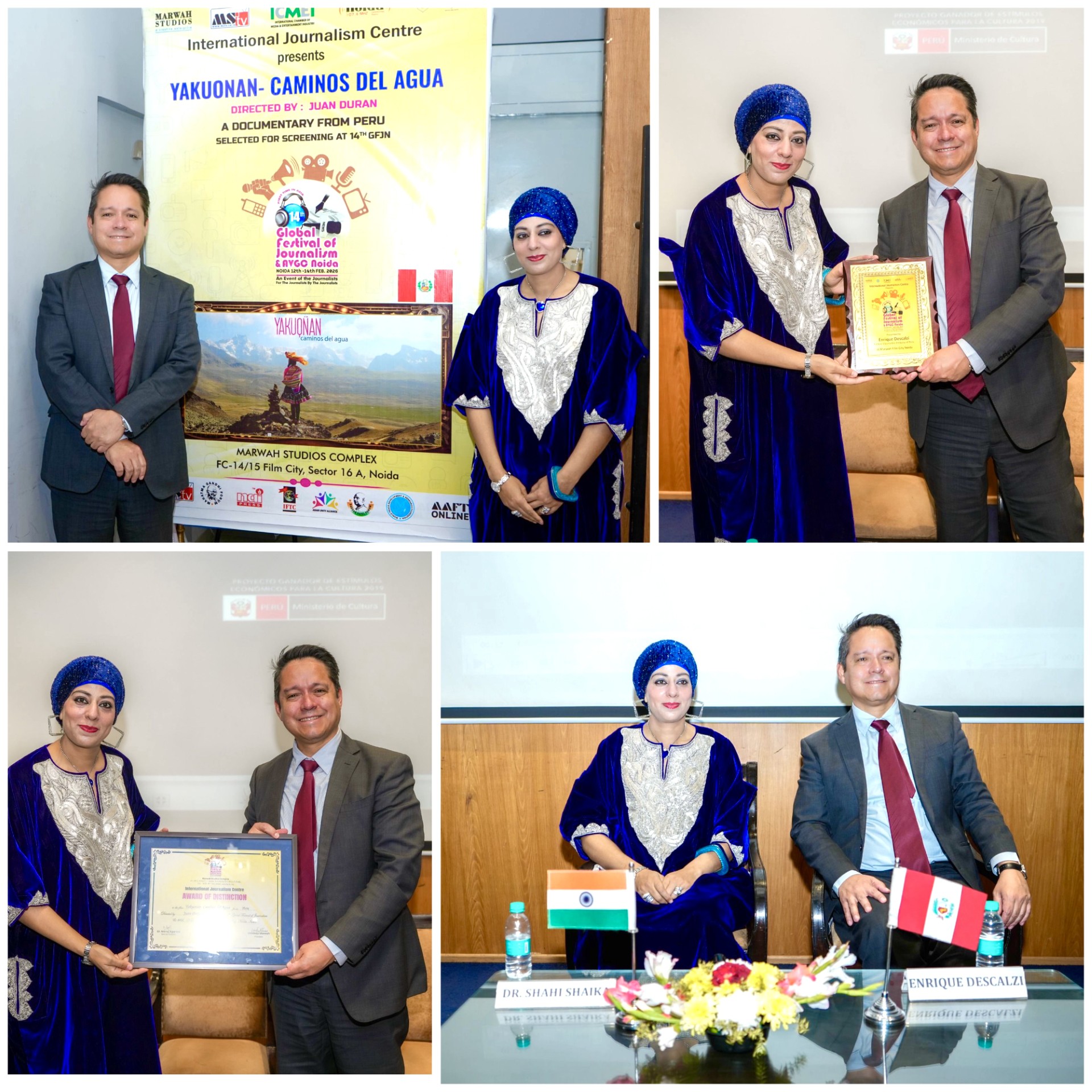Speaking on the occasion, Cultural Counsellor Enrique Descalzi thanked the festival authorities for showcasing Peruvian cinema on an international platform. He appreciated the efforts of the Indo Peru Film and Cultural Forum in promoting cultural diplomacy and fostering artistic collaboration between Peru and India.